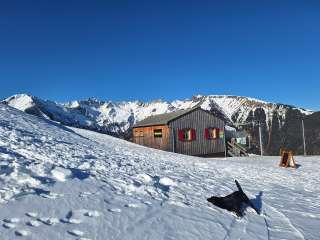 Die Hütte steht bei der Bergstation des Skilift Tristeli.