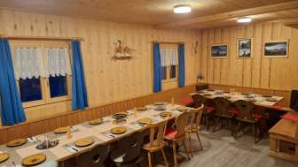 Bescheidene Hütte mit heimeliger Gaststube und sonniger Terrasse mit herrlicher Aussicht.