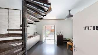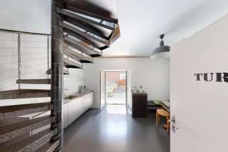 Die Wendeltreppe der Turmloft verbindet die fünf offen gestalteten Etagen bestehend aus einem kleinen Essbereich mit Terrasse, zwei Schlaflevels mit einem Doppel- und zwei Einzelbetten, einem grosszügigen Badezimmer mit Dusche und WC, sowie ganz zuoberst mit einem Wohnbereich. Die stilvolle Einrichtung und der individuelle Charme überzeugen alle Loft-Liebhaber.