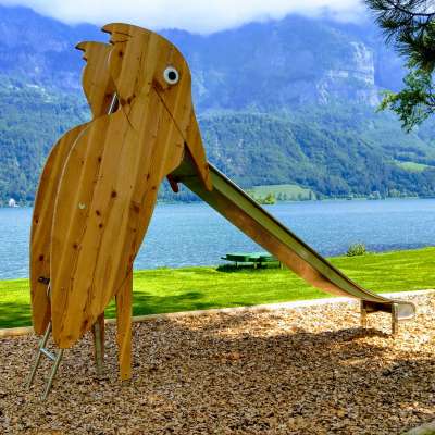 Am naturbelassenden Molser Seeufer treffen sich Wasserspiele und Uferspiele. Neben einer grossen grünen Liegewiese am Strand findest du die luftigen Spieloase mi Reiher-Rutsche, Möwen-Schaukel, Frösche-Wippe, Seerosen-Balancierpfad sowie einer kleinen Anlage mit Wasserspielen, in der du nach Lust und Laune stauen und spritzen kannst. Beim Ufer- und Wasserspielen kannst du dich austoben oder (ausserhalb der Hauptsaison) auch mal die weiche Grünfläche zur Spielwiese machen. Unter grossen Bäumen findest du Schatten, etwas weiter unten am Strand Wellen, Steine und Schwemmholz. Und während der Wind mit Blättern und Wellen spielt, schwimmt dann und wann eine Ente vorbei.