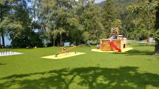 Wellen, Wind, Steine, Bäume und Wiesen: Der idyllische Strand am Seeufer von Walenstadt ist voller Leben – und das nicht erst seit gestern. Auf dem Spielplatz hat es ein grosses Holzschiff, auf dem du nach Herzenslust herumklettern kannst und per Rutschbahn-Express saust du später wieder hinunter. Auch Wippe, Schaukel, Balancierpfad und Geschicklichkeitsspiel greifen Elemente der Schifffahrt auf. Achte einmal draus, wo du überall Seile und Netze findest… Der Spielplatz ist Teil der grossen Liegewiese am rechten Seeufer. Hier hast du genügend Platz zum Auspowern.