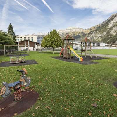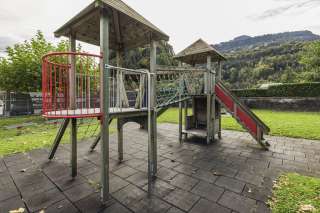 Der Spielplatz Altersheim Flums bietet zwei Spieltürme mit Rutschbahn und Kletterelementen, Schaukeln, ein Drehrad, Balancierstangen und einen Sandkasten. Kinder können hier ihre motorischen Fähigkeiten entwickeln und Abenteuer erleben.