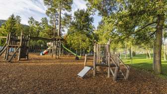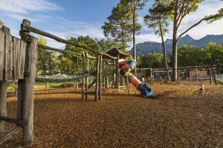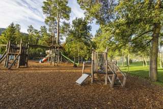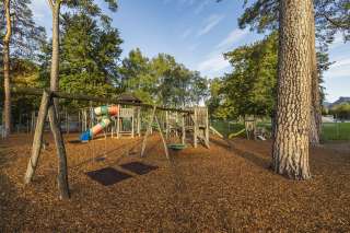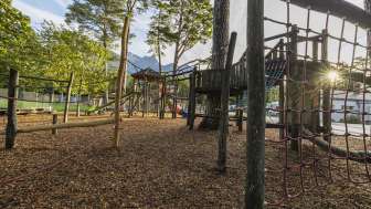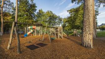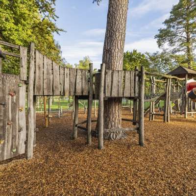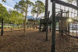 Ein großer, vielseitiger Spielplatz, der für Kinder jeden Alters viele spannende Möglichkeiten bietet. Hier finden sich mehrere Rutschbahnen, darunter auch eine speziell für kleinere Kinder, die sicher und spielerisch ins Abenteuer starten können. Kletterelemente und ein Kletternetz fordern die älteren Kinder heraus, ihre Geschicklichkeit und ihre Kletterfähigkeiten unter Beweis zu stellen. Mehrere Schaukeln sorgen für viel Schwung und Spaß. Der Spielplatz befindet sich in unmittelbarer Nähe zu einem Restaurant, sodass Eltern bequem eine Pause einlegen können, während ihre Kinder sich austoben. Ein idealer Ort für die ganze Familie, um gemeinsam einen entspannten Tag zu verbringen!