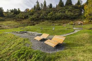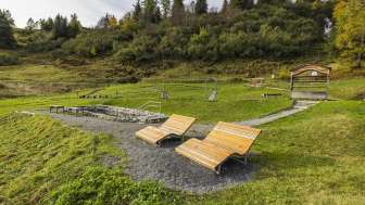 Der Spielplatz Heidipfad Pizol in Wangs bietet Kindern verschiedene Sinneserfahrungen und Spielmöglichkeiten. Barfusswege, Steinpfade und eine Kneippanlage laden zum Entdecken ein. Bänke und Holzliegen bieten Entspannung.