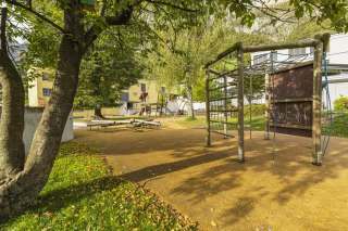 Mit einer Vielzahl an Kletterelementen können die kleinen Entdecker ihre Geschicklichkeit und ihren Mut unter Beweis stellen, während sie von einem Klettergerät zum nächsten wechseln. Eine Rutschbahn sorgt für rasante Abfahrten und jede Menge Spaß. Zudem laden zwei Schaukeln dazu ein, hoch hinauf in den Himmel zu schwingen. Der Spielplatz bietet eine tolle Mischung aus Bewegung, Abenteuer und Freude – perfekt für Kinder, die sich so richtig austoben möchten.