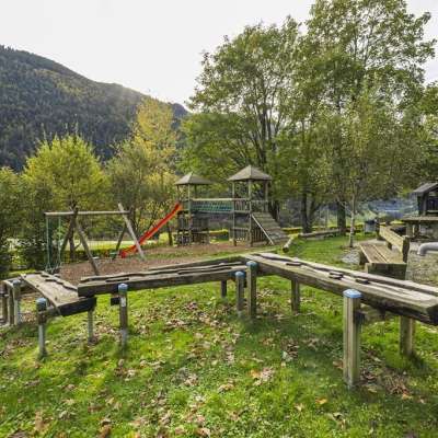 Der Spielplatz Valens bietet mit zwei Türmen, Kletterelementen und einer Rutschbahn viel zu erkunden. Schaukeln, eine Zipline und ein grosser Sandkasten sorgen für Spass. Ein Wasserspiel mit Pumpe ist im Sommer besonders beliebt.