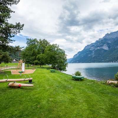 Das Strandbad Mols bietet eine grosszügige Liegewiese und einen kleinen Kieselstrand. Der frei zugängliche Strand ist Teil des Spielerlebnisses Walensee und verfügt über einen integrierten Spielplatz.