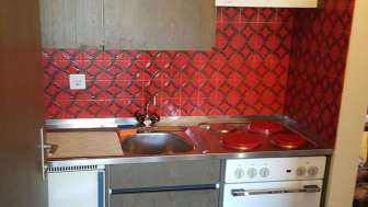 Das Studio im Parterre mit Terrasse ist einfach eingerichtet, mit allem, was man braucht.
