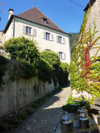 Das barocke Bürgerhaus mit Nebenbauten und Torkel sowie die eingefriedete Gartenanlage bilden mit Kirche und Salishaus das ortsbildprägende Ensemble, akzentuiert durch die gemeinsame Umfassungsmauer. Der Zugang ins Hauptgebäude erfolgt über eine zweiläufige ostseitige Freitreppe durch das in Stein gefasste Portal unter dem Allianzwappen Guler von Wynegg/Sprecher hindurch.