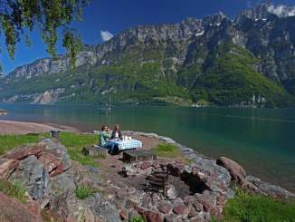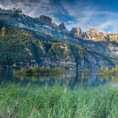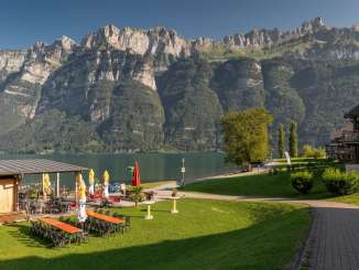 Der Walensee im Osten der Schweiz wird auf seiner Nordseite von den steil aufragenden Churfirsten begrenzt. Die Szenerie mit dem tiefblauen See und den steilen Felswänden erinnert an einen norwegischen Fjord. Eine Besonderheit stellt das autofreie Weindörfchen Quinten dar, das nur zu Fuss oder mit dem Walenseeschiff erreicht werden kann. Hier lässt das milde Klima Kiwis und Feigen gedeihen. Zwischen Weesen und Quinten locken zudem die dreistufigen Seerenbachfälle, welche zu den höchsten Wasserfällen der Schweiz zählen. Ob ein ausgedehnter Spaziergang am Seeufer, ein Sonnenbad am Strand oder eine gemütliche Schifffahrt, ob Wassersport, Wandern oder Biken: Die Gegend am Walensee ist wie gemacht für aktive Gäste.
