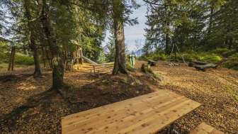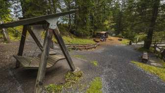 Der Spielplatz liegt in einer idyllischen Waldlichtung an einem Bach. Ein großzügiger Picknickplatz mit Grillstellen lädt zum Verweilen und gemütlichen Beisammensein ein. Hier können Familien und Freunde inmitten der Natur ein schönes Picknick genießen und gemeinsam grillen. Der Spielbereich umfasst eine Rutschbahn und die besonders attraktiven und zahlreichen Wasserspiele. Die Kinder können in Kanälen das Wasser fliessen lassen und mit Wasser spritzen. Ein perfekter Ort für eine Kombination aus Entspannung und Abenteuer!