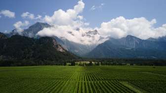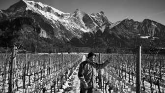 Erfahrung und Handwerk sind abgestimmt auf das Fläscher Terroir. Reich an Kalk und je nach Lage mit Ton und Lehm angereichert, prägen diese durchlässigen, warmen Schiefer-Böden unsere Weine. Doch erst das Mikroklima macht das Fläscher Terroir perfekt: Im Herbst ist der Himmel über der Bündner Herrschaft meist tiefblau und die Luft fühlt sich an wie Seide. Dann streicht der Föhn durch die Regionen des Alpenrheins. Er trocknet den Tau von den Trauben und seine Wärme verpasst der Beerenreife den letzten Schliff. So heiss es tagsüber auch werden kann. Gegen Abend streichen kühle Fallwinde vom Fläscher Berg her durch die Reben und sorgen für eine balancierte Säure.