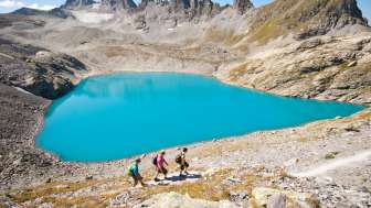 Ob Wildsee, Schottensee, Wangsersee, Schwarzsee oder Baschalvasee: Jeder der fünf Pizolseen ist ein Bijou für sich und so unterschiedlich, dass der Betrachter aus dem Staunen nicht mehr herauskommt. Als Wanderklassiker in der Schweiz gilt die 5-Seen-Wanderung, bei der man an allen Pizolseen verbeikommt. Die Wanderung beginnt bei der Pizolhütte am Wangsersee. Der Aufstieg zur Wildseelücke auf 2'493 m, von wo man eine schöne Aussicht bis zum Ortler und Piz Kesch hat, dauert rund eine Stunde. Unterhalb der Scharte auf 2'438 m liegt der Wildsee, mit seinem milchig-blauen Wasser und wirkt fast wie hineingemalt in die unwirtlich-karge Alpinlandschaft. Im Hintergrund entdeckt man Pizolgletscher, den Pizolgipfel und die Grauen Hörner. Nach einem kurzen Abstieg gelangt man zum grünlich schimmernden Schottensee auf 2'335 m, dessen klares Wasser ganz Hartgesottene an einem schönen Sommertag ab und an sogar zu einem Bade animiert. Weiter geht es zum Schwarzsee 2'368 m, der im Gegensatz zu den ersten beiden Seen eher dunkel und bedrohlich wirkt. Kein Wunder, soll hier der Legende nach ein Stier im Wasser hause. An zahlreichen alten Steinmannli vorbei gelangt man schliesslich zum Baschalvasee auf 2'174 m, dessen Farbe mit dem Grün der umliegenden Matten konkurriert.